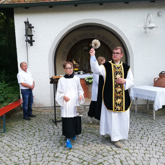 Das Requiem für die Verstorbenen am Montag Abend auf dem Niederumelsdorfer Friedhof besiegelte die Festwoche. Thorsten Rabel weihte die Gräber bei seinem Friedhofsrundgang und schloss vor allem seinen verstorbenen Vater ins Gebet ein.
