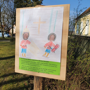 Im Rahmen der Erstkommunionvorbereitung zeigten die Tischmütter aus Train mit ihren Kindern eine besondere Kreativität. Gemeinsam überlegten und bastelten sie einen Kreuzweg für Kinder. Die 14 Stationen befinden sich im Freien um die Pfarrkirche St. Michael als Rundweg. Der Kinderkreuzweg beginnt an der Marienkapelle und führt in Richtung Kreuz und Lourdes-Grotte. Die einzelnen Stationen laden noch bis zum Weißen Sonntag zu Gebet und Betrachtung ein. Herzliche Einladung!